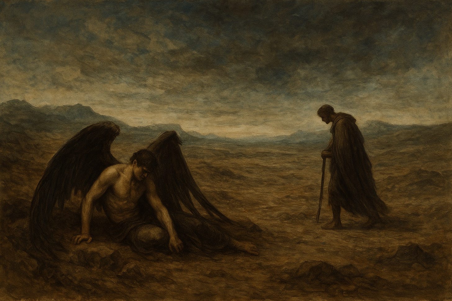 The founding cry of his fall —Non serviam— is not the lament of a slave yearning for freedom, but a metaphysical declaration of independence from the One to whom he owes his very being.